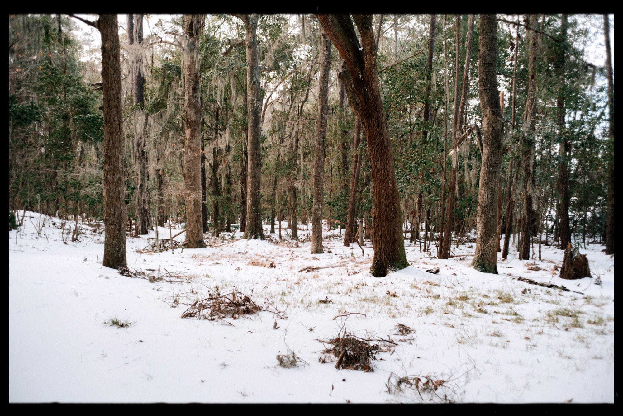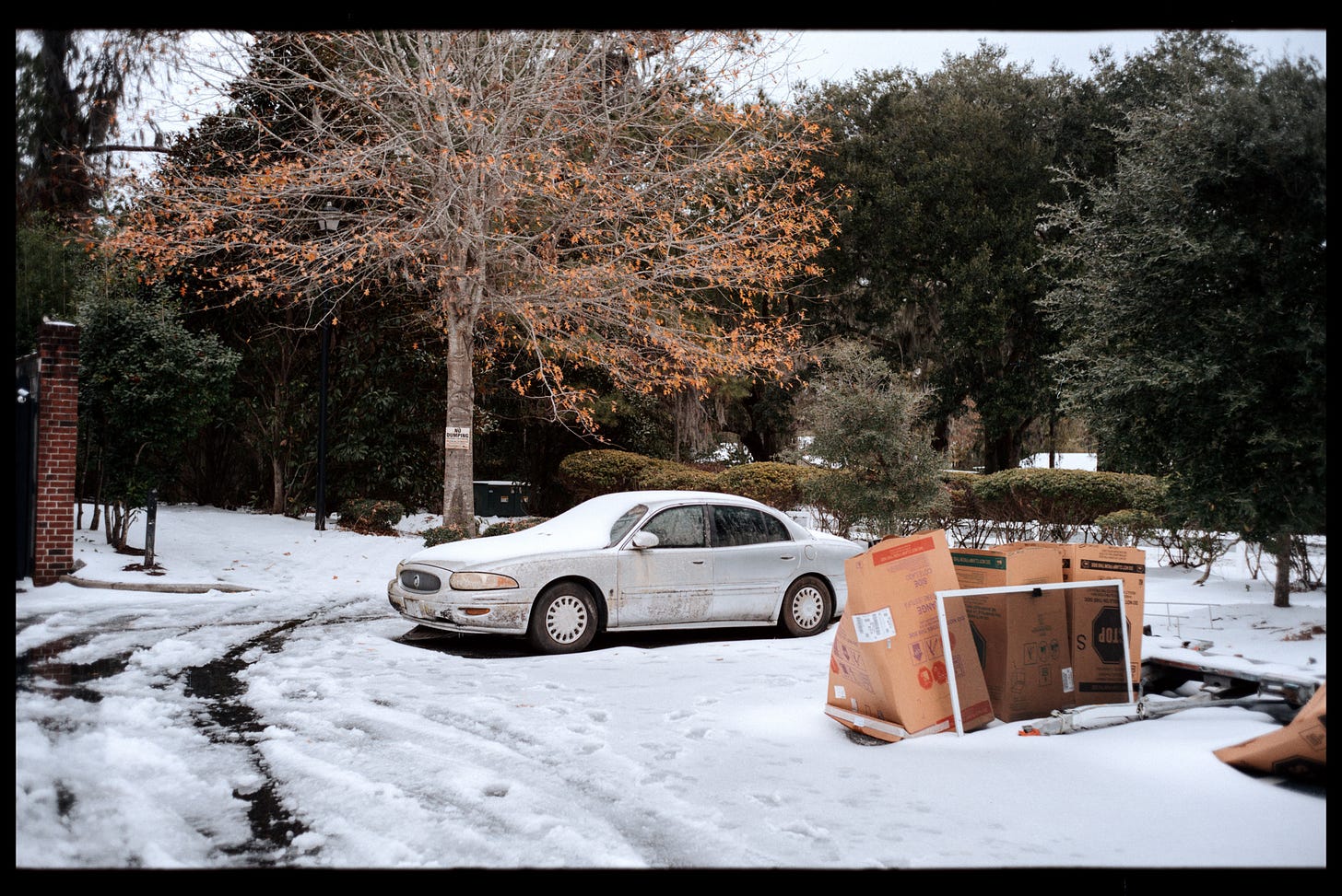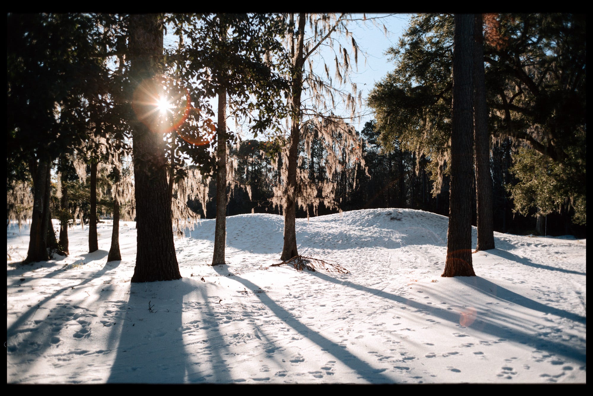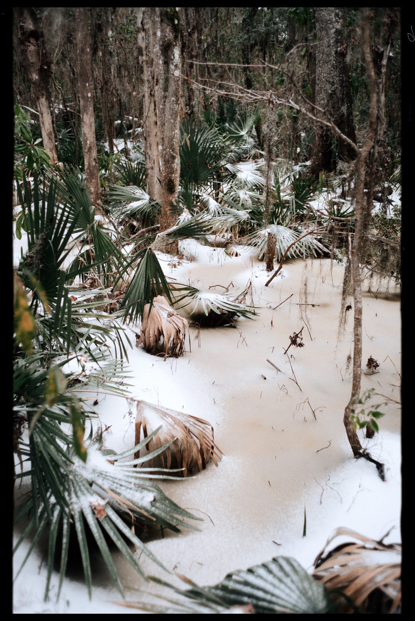Love the shot of the chainlink fence! There's definitely something jarring about seeing snow in the same frame as palmettos or Spanish moss.