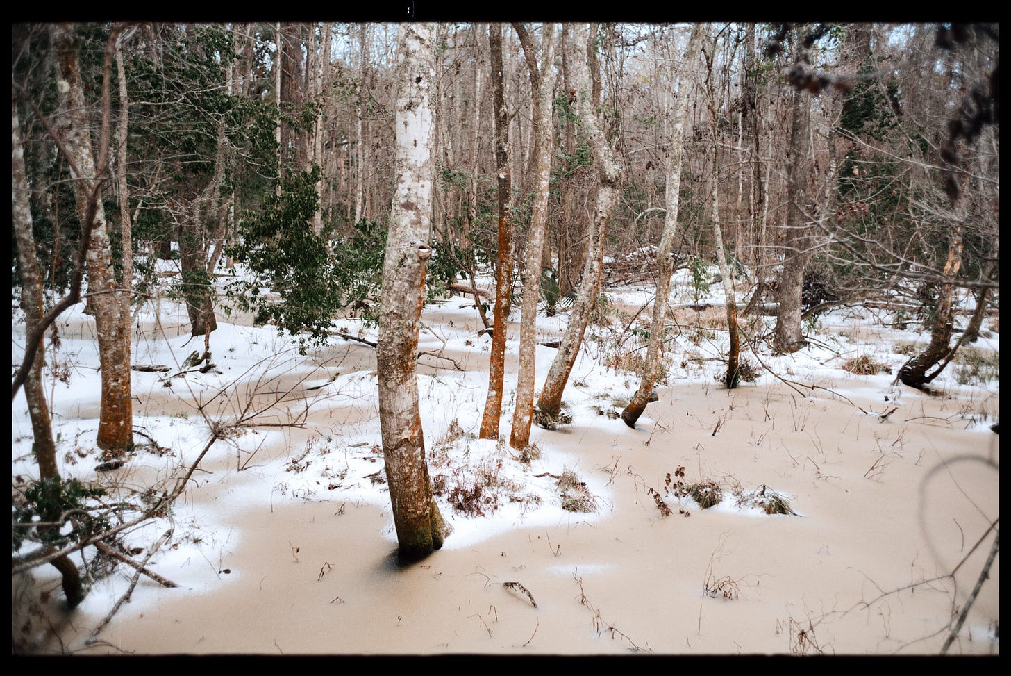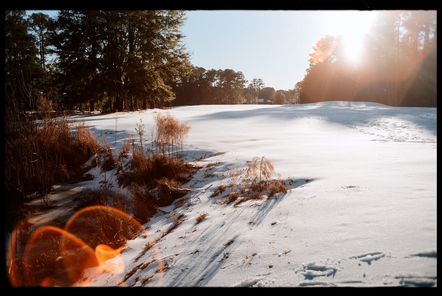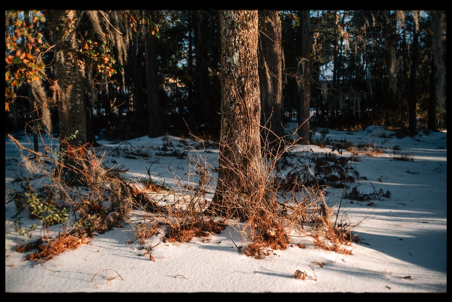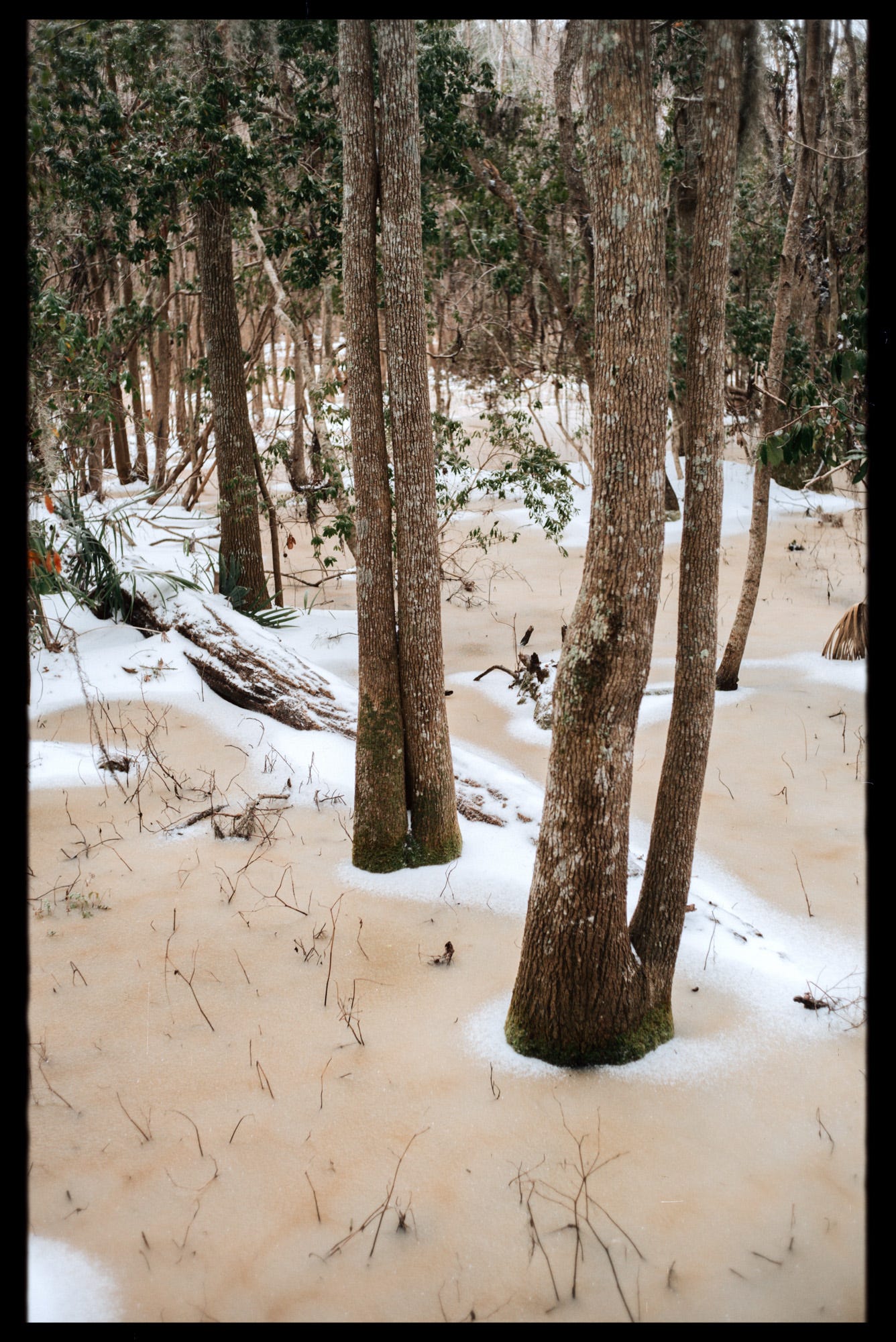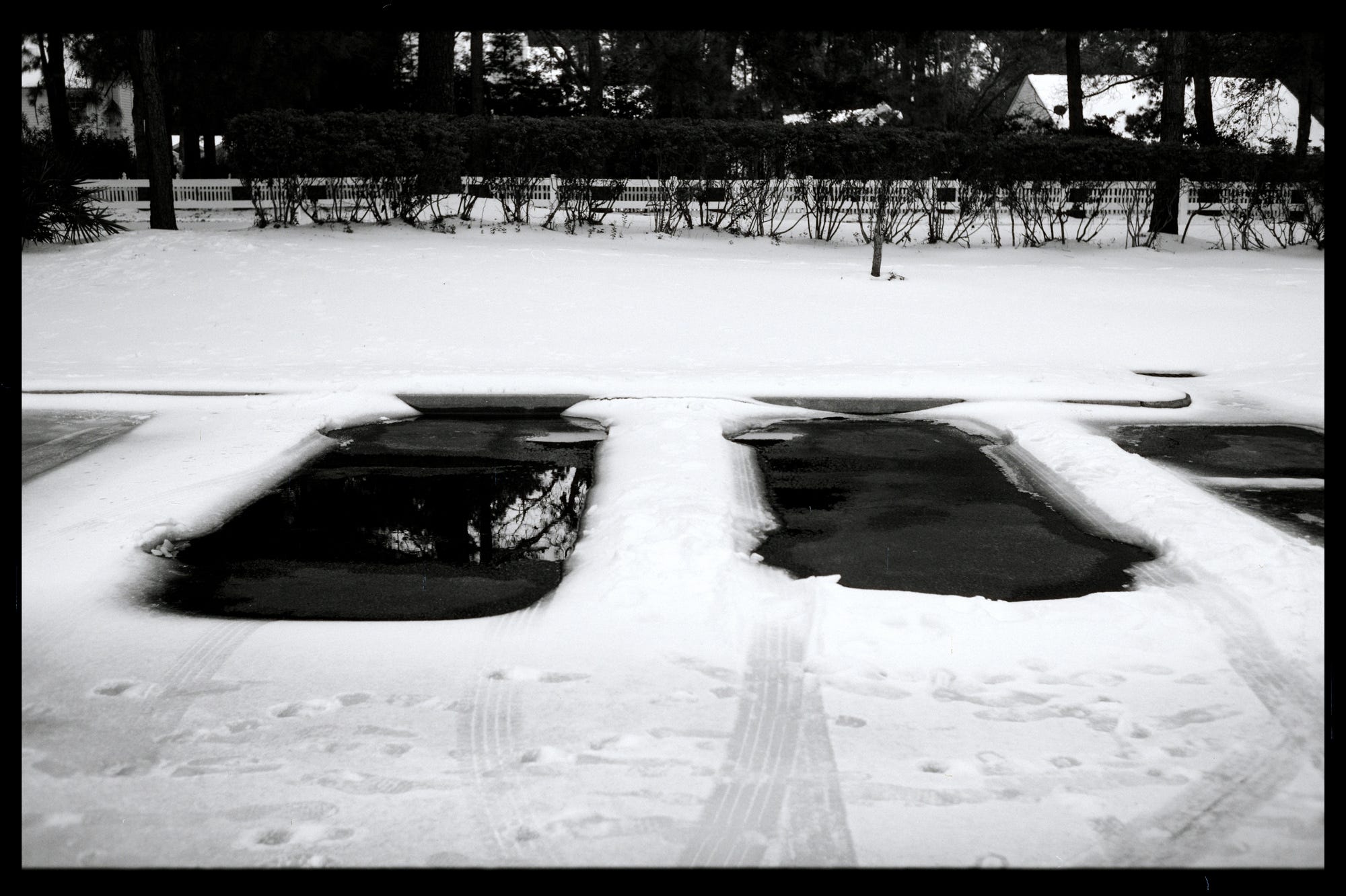Love the shot of the chainlink fence! There's definitely something jarring about seeing snow in the same frame as palmettos or Spanish moss.