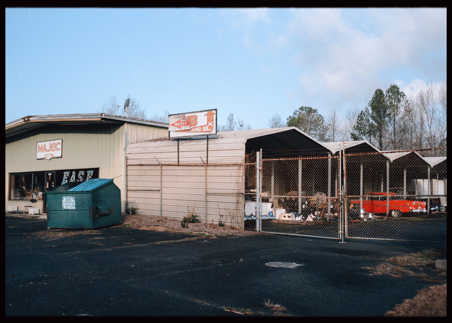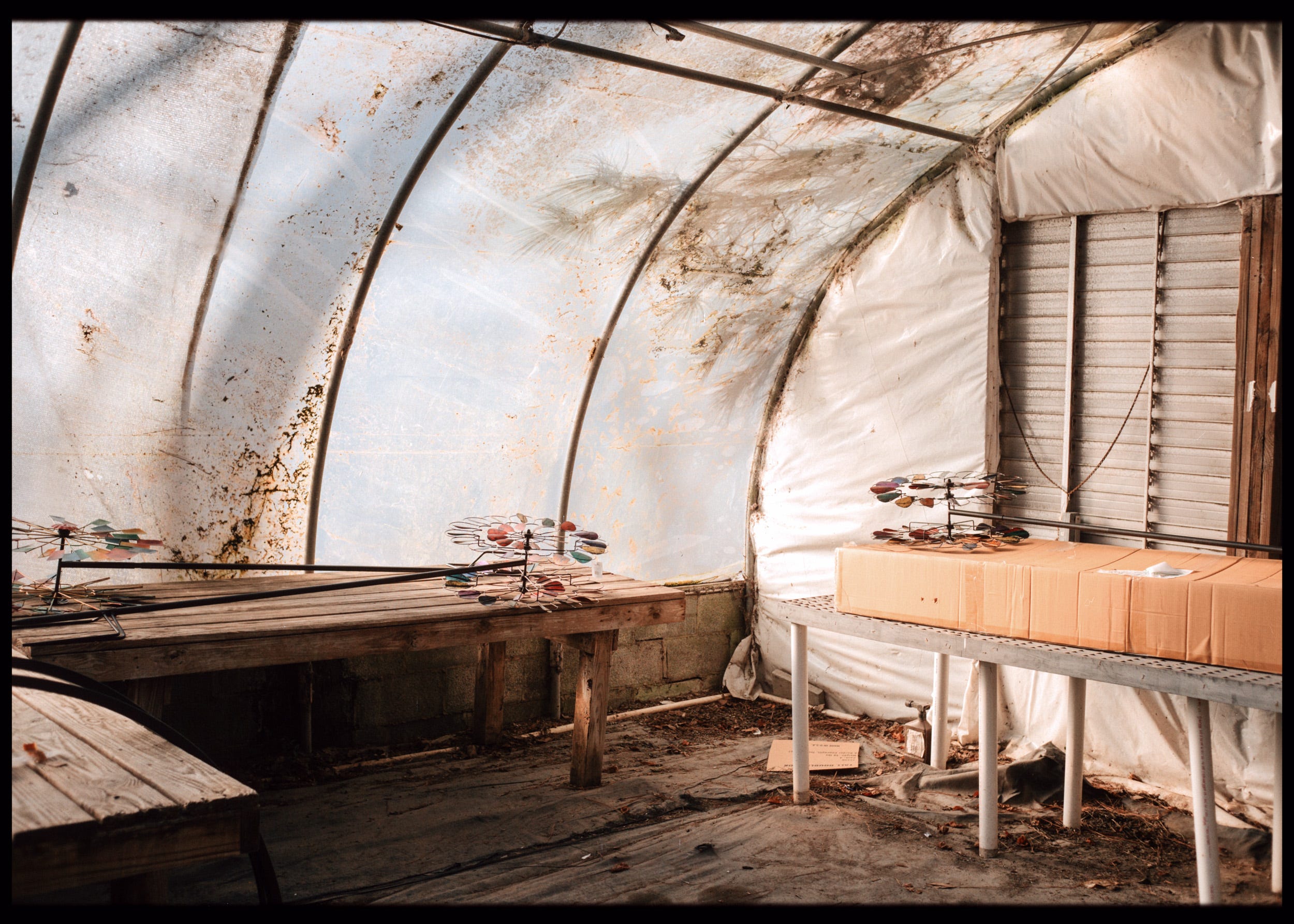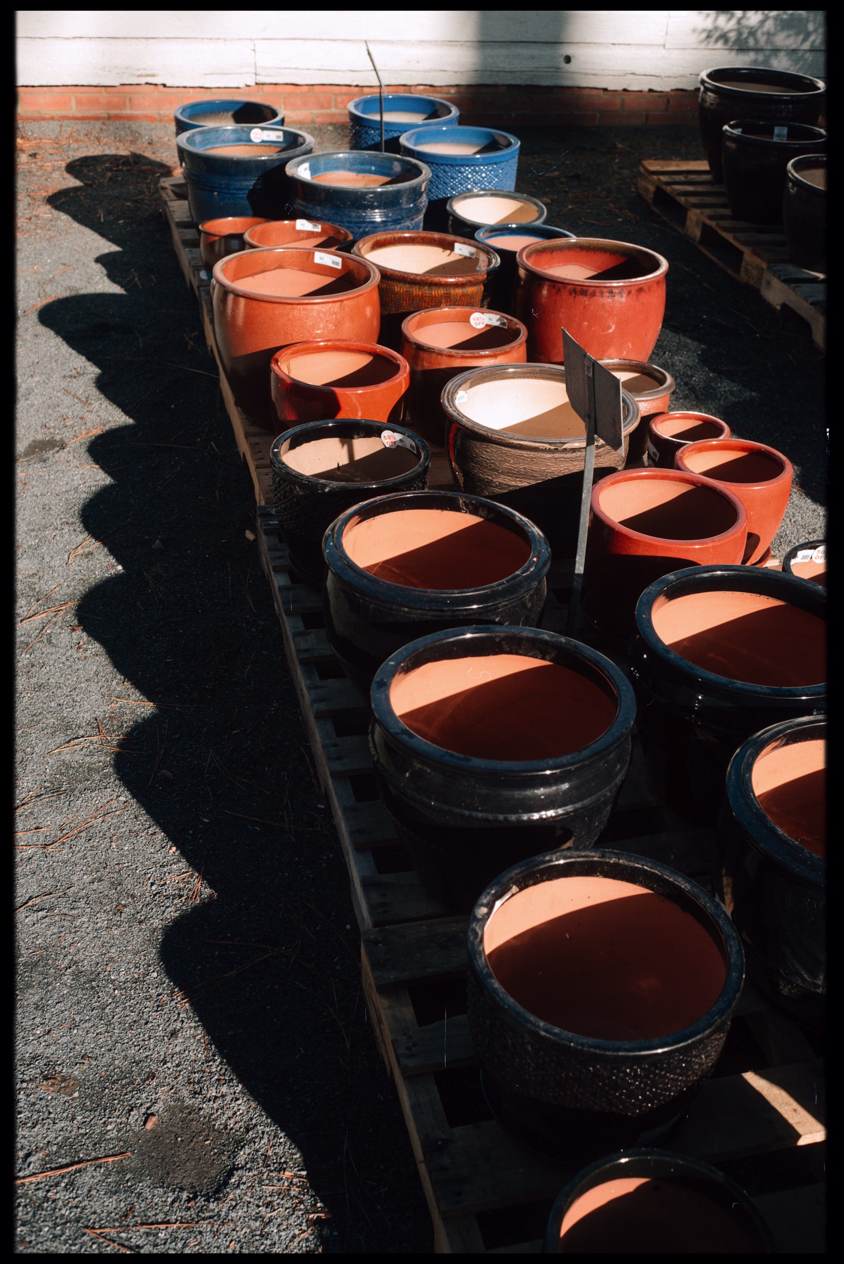 As I walked further, I visited a plant nursery that was just opening. The woman who was opening the gate was very nice and invited me into walk around and do as I please. There were a few nice plants around, but what gravitates me the most is seemingly, to others maybe, the "ugly stuff" or the subject matter that one wouldn’t really consider making a photograph of. Blank spaces, trash, neglect - it's all good stuff to me. The light falling upon these subjects makes them interesting.