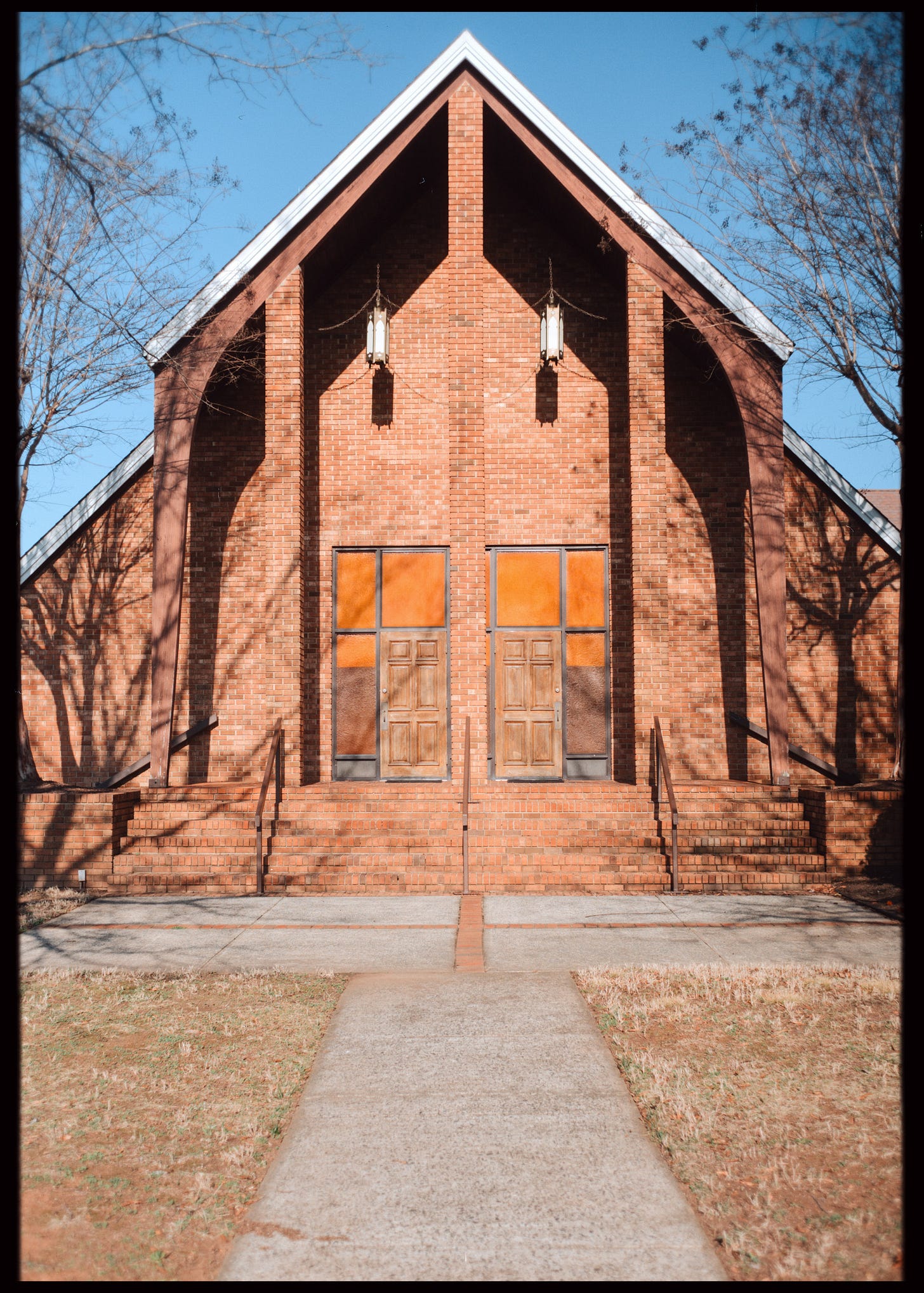 Eventually, I ended up at a church with these really nice orange and brown doors. I sat on a bench in the back to kill some time, listening to a few podcasts. While I was there, I noticed a sign that read: